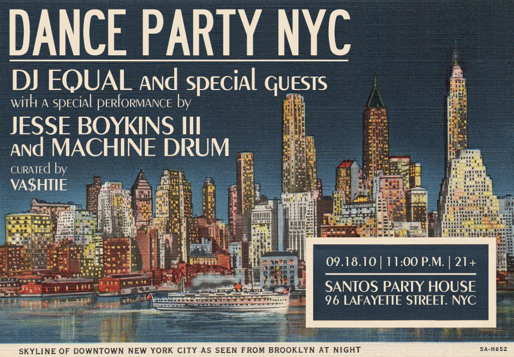 invite: DANCE PARTY NYC x CURATED BY VASHTIE x MUSIC BY DJ EQUAL x PERFORMANCE BY JESSE BOYKINS III & MACHINE DRUM (9.18.10)