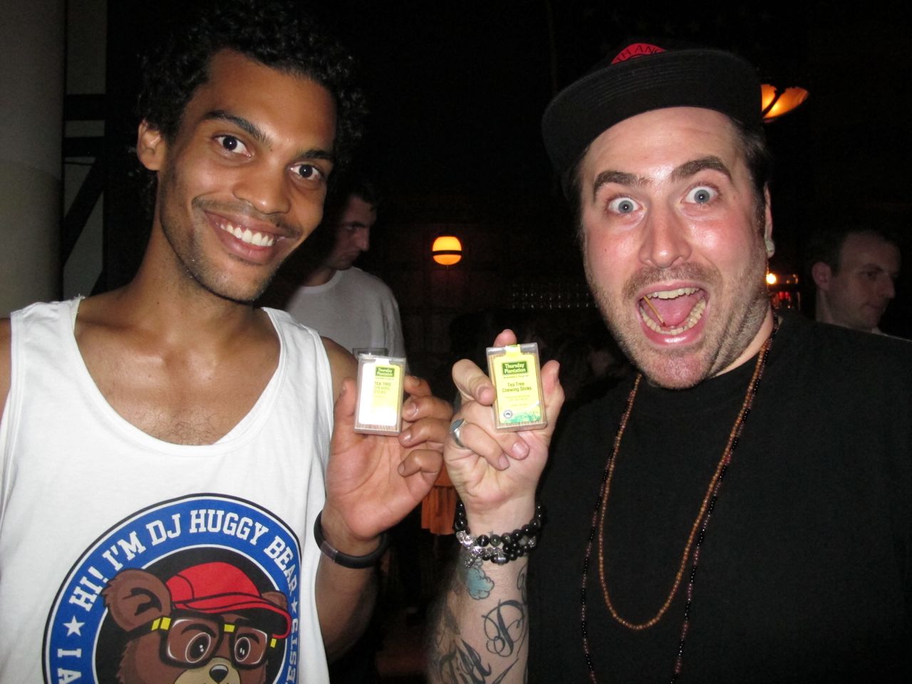 I’ve been knowing these dudes since 2005 and they are a lovable pair! Saturday night we all trotted off to THE ACE HOTEL to celebrate the lives of twins ANDREW & STEPHEN BARR. Stephen, aka Huggy Bear, was DJ’ing some infectious sounds while we all had a good time. He even broke out the new DJ HUGGY BEAR merch, which will be available online soon! Check it out…