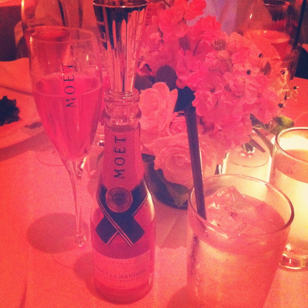 Last night, I was invited to a 50 person seated dinner (thanks to TEAM EPIPHANY) at the newly re-opened BAGATELLE in honor of NAS. Sponsored by MOET ROSE, the champagne was flowing like water…seriously, there was never a flute empty at any point.