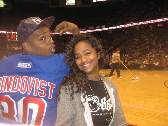 I scored a couple of perfect seats, sitting front row and courtside directly next to the NEW JERSEY NETS. It was a few days after KUNLE’S birthday and I decided he should be my date. I knew he would appreciate it, especially after being roommates with him — which meant being forced to watch every sport known to man on our shared living room TV.