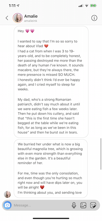 I especially want to say thank you to all of you who were on the journey with me and Vlad. Thank you to those of you who left comments and messages of condolences, but also shared stories of your own companion loss…you have no idea how it made me feel understood, while also letting me know I was not alone.
