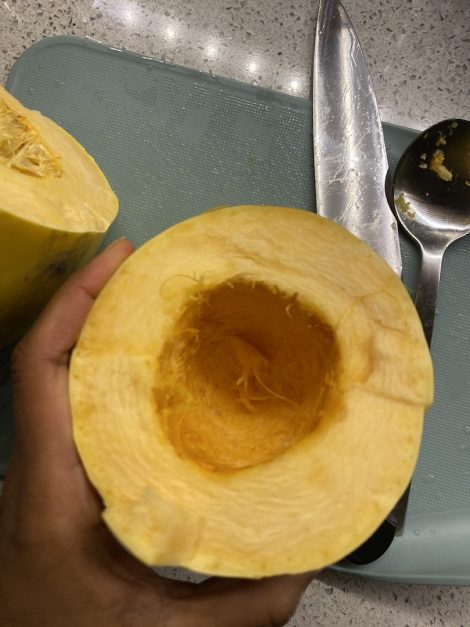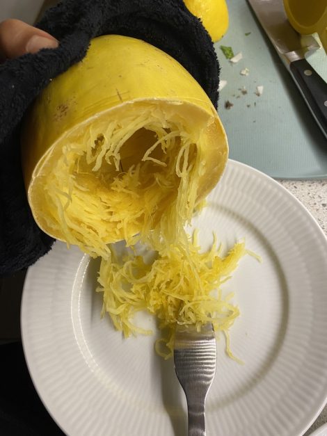 I started to scoop out the spaghetti squash. This part is so satisfying!