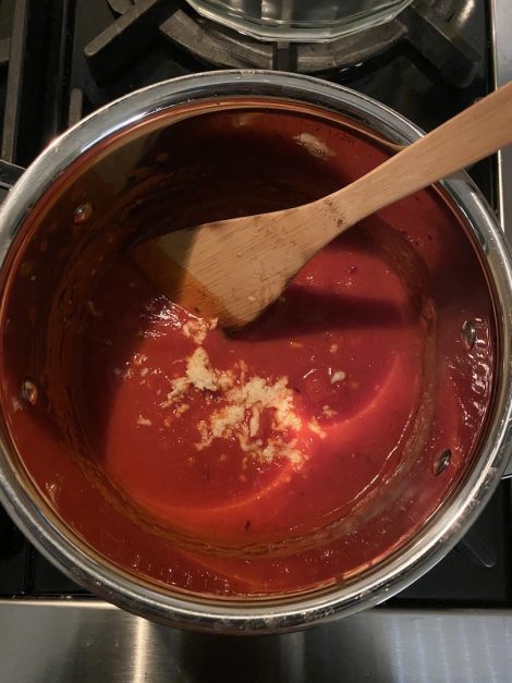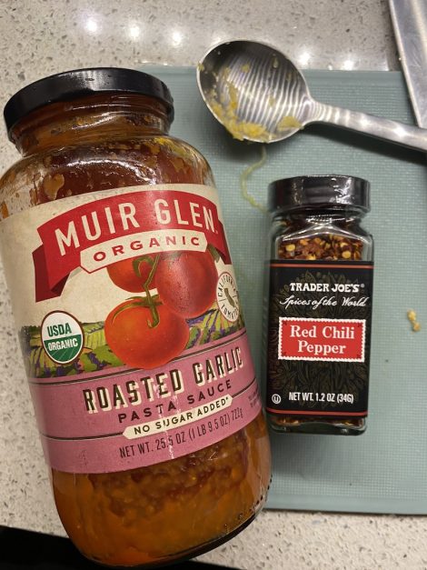 Have some Pasta sauce and extras to pump it up. I like to add garlic to anything, so I added some cloves. I also like spice so I added red pepper flakes…but add or don’t add what you like.