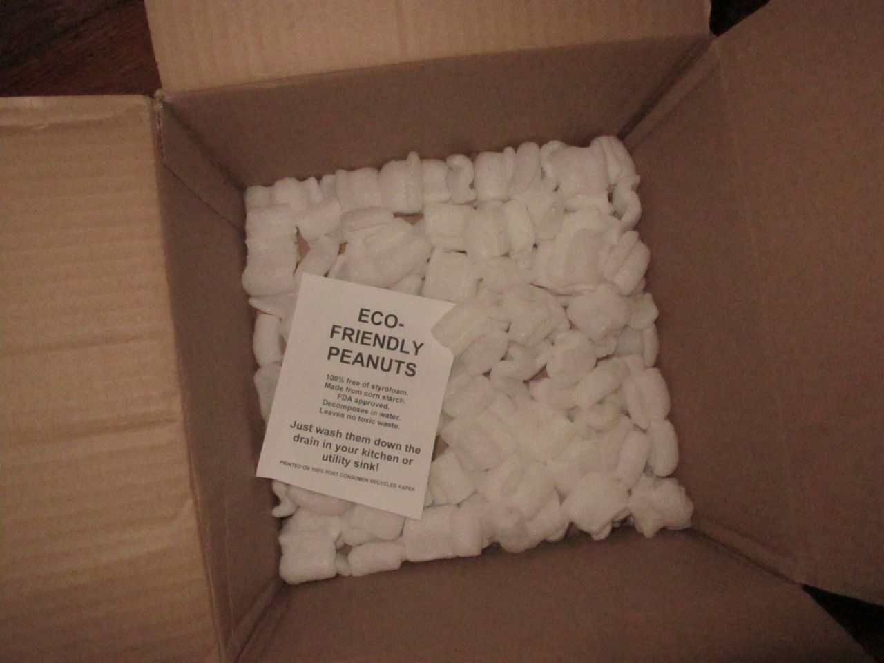 *first of all, the package was sent in a bed of “ECO FRIENDLY PEANUTS”. I read the note about how they dissolve in water and quickly took to my sink!