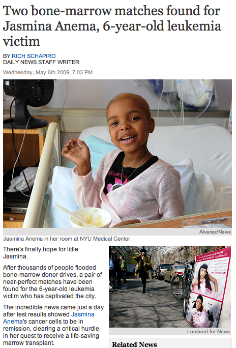 remember JASMINA, the sweet little girl i posted about that had the aggressive leukemia and needed a matching donor to…
